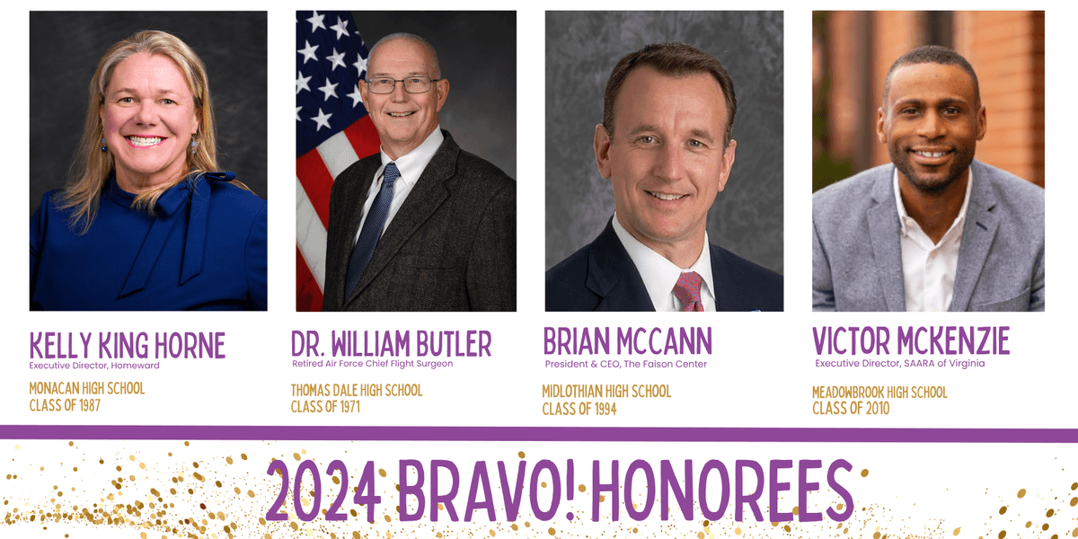 The BRAVO! Awards is an annual celebration of the outstanding achievements of Chesterfield County Public Schools alums. Held each fall, it has come to be known as an inspiring evening, offering an opportunity to hear the honorees share their personal stories of how a Chesterfield County Public Schools education contributed to launching them on their path to success.